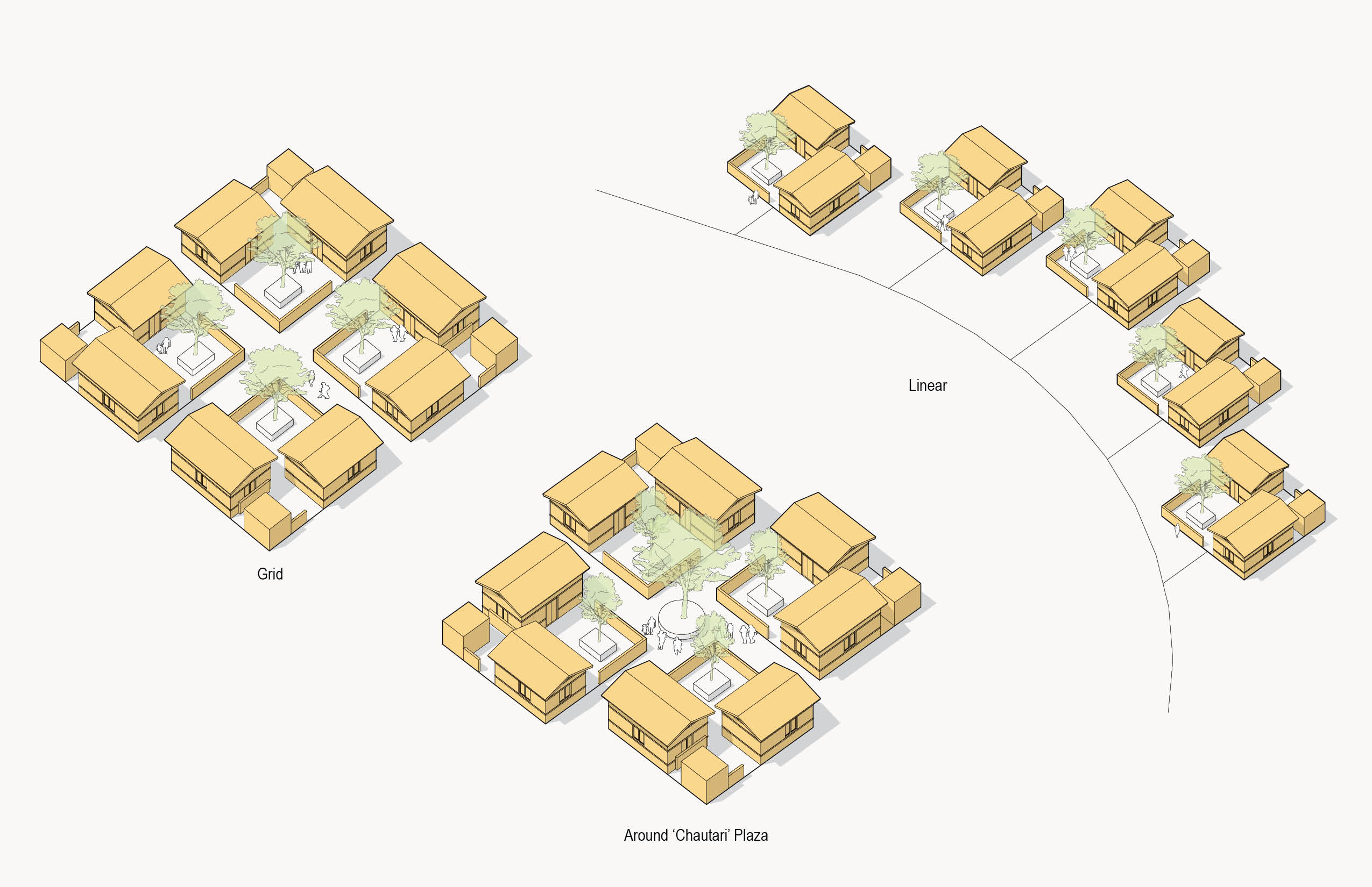 Conceptual image from Henriquez Partners showing housing distribution studies in Dalit community.